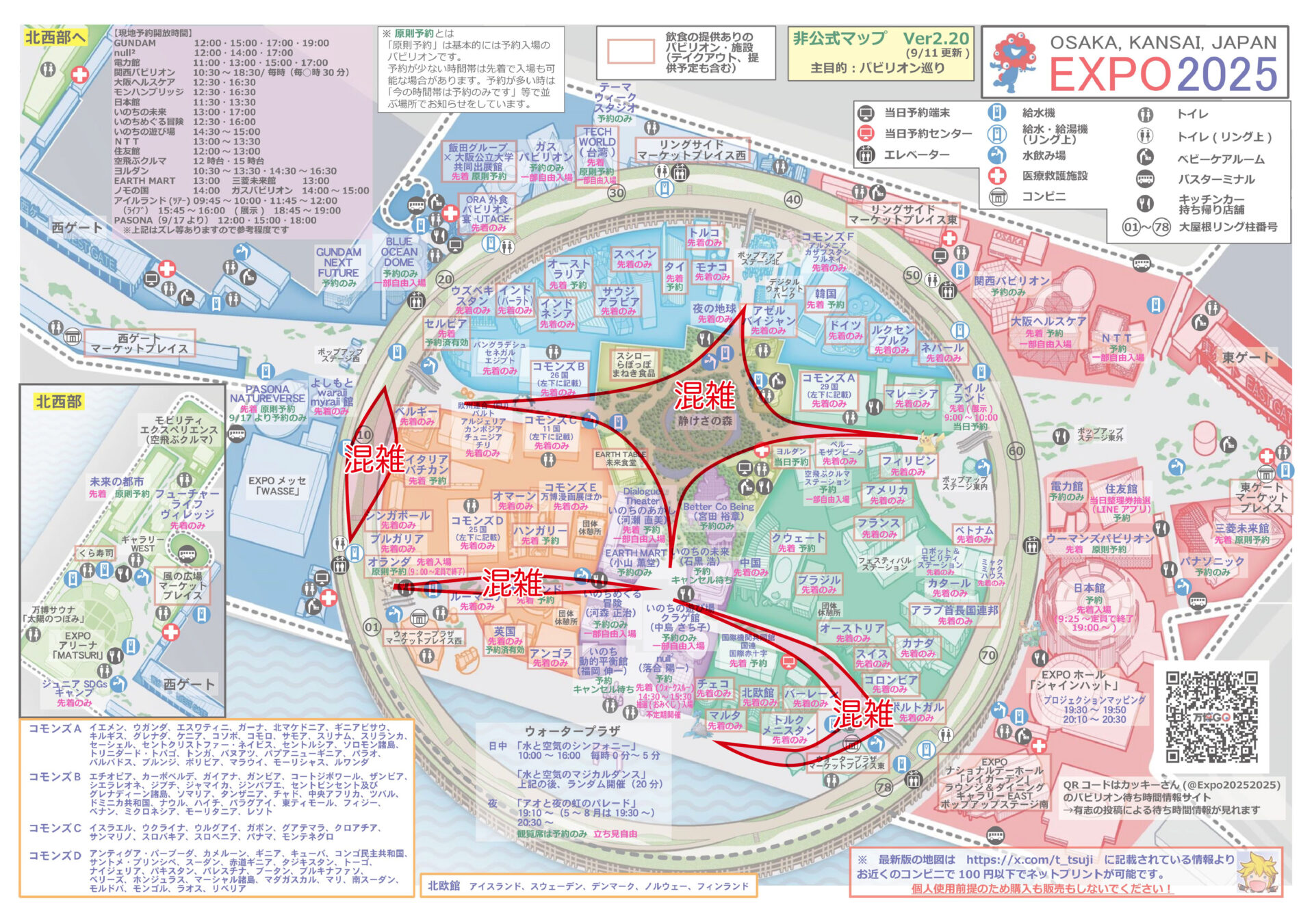9月13日に訪れて15時ぐらいの段階で、コモンズも含めて多くのパビリオンが入場規制を掛けていました。