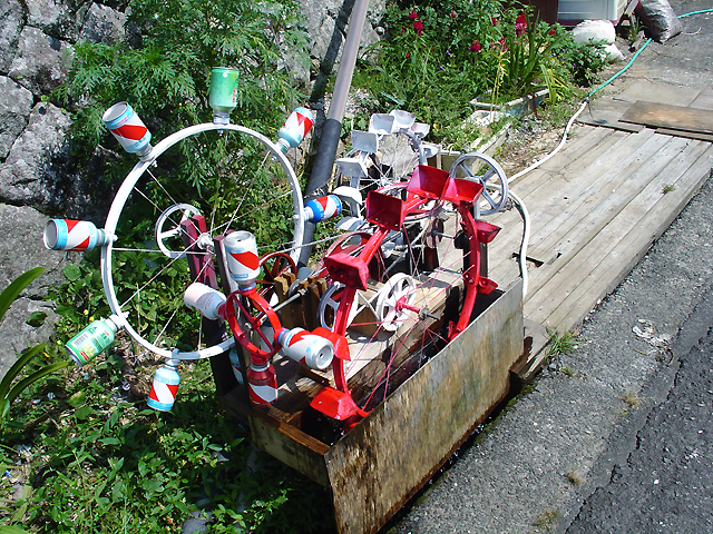 その昼嶋付近にあった家の前、金魚?を飼っているのでしょうか。