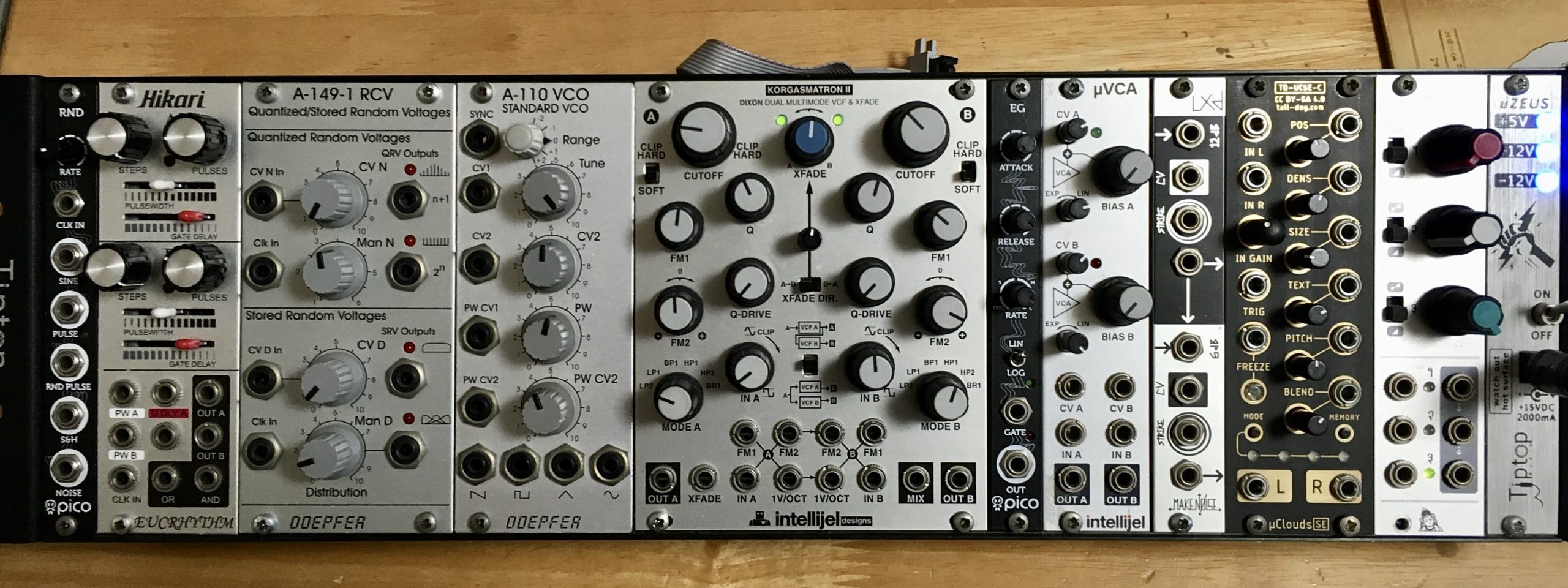 84HP/10モジュールとか、サイン波のみ使用とか、そんな感じで一定の〝縛り〟の範囲内でライブとかやったりしていますが、だからといって「やりたい事が出来ない」ぐらいの縛りでやってるわけでもありません。